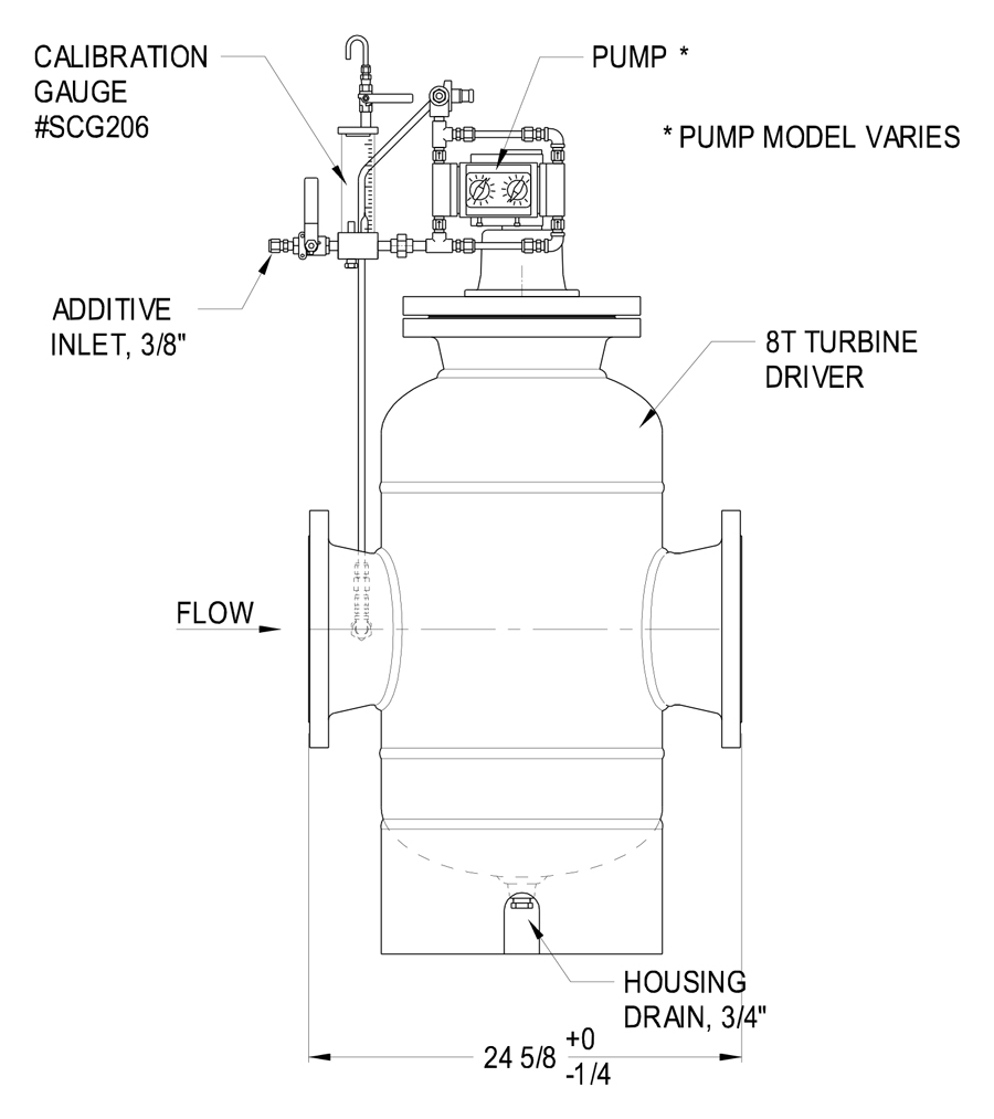 The 8T Series system offers single or multiple additive injection at flow rates typically found in fuel delivery terminals and transport trailer fill stands. The unique turbine-powered fluid motor responds precisely to changes in product volume even at lower product flow rates. Like all Hammonds injection systems, the 8T dispenses precise quantities of additive at a continuous rate, eliminating the “slugging” effect typically found in meter-pulsed injectors.